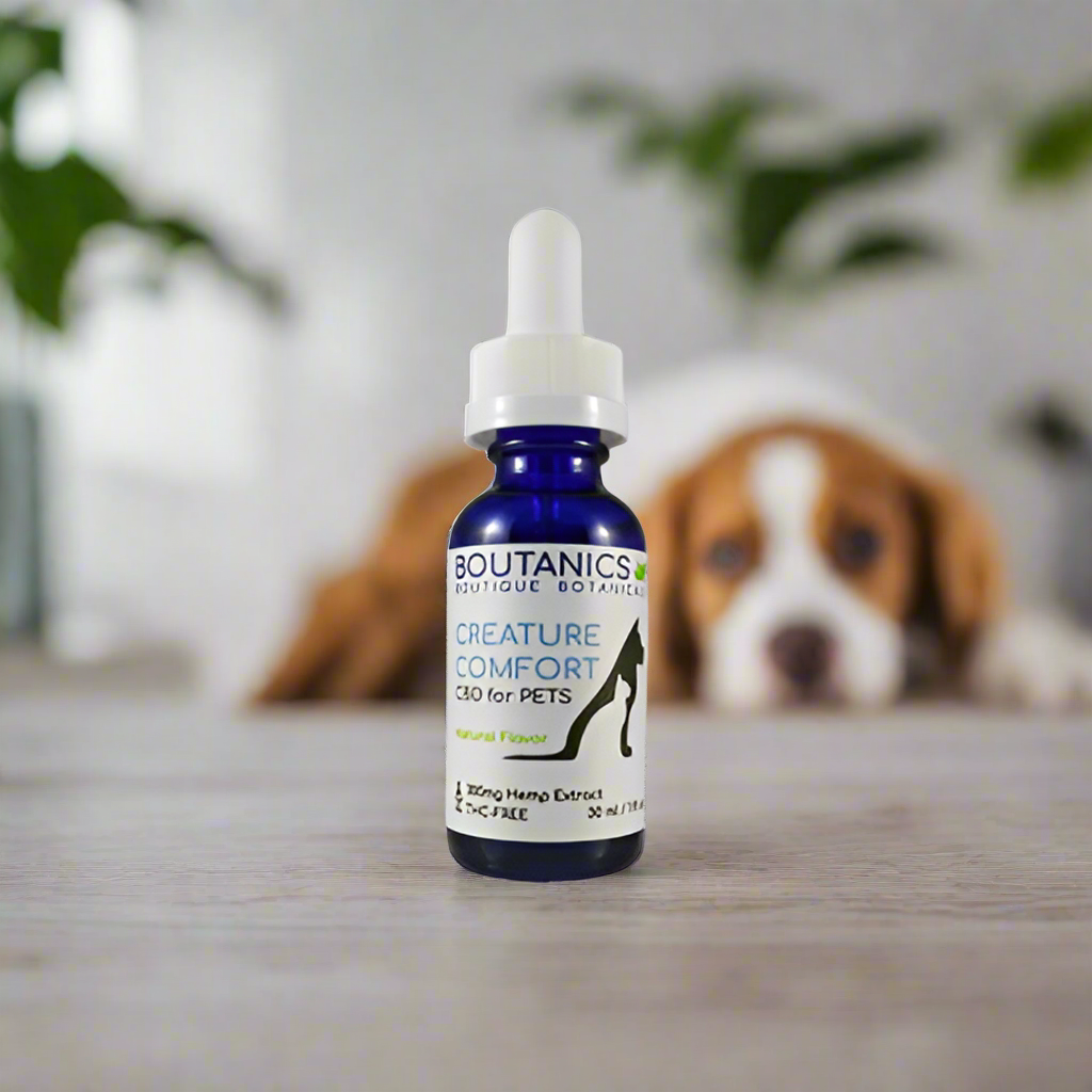 Our Creature Comfort pet formula combines our premium hemp extract with MCT oil for a safe, easily digestible and healthy tincture for your beloved dog or cat. Creature Comfort promotes healthy, mobile hips and joints and provides stressed-out or anxious pets with a sense of calm.